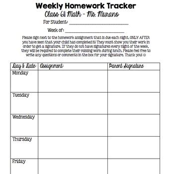 Read Online weekly-homework-sheet-parent-signature Epub ManyBooks